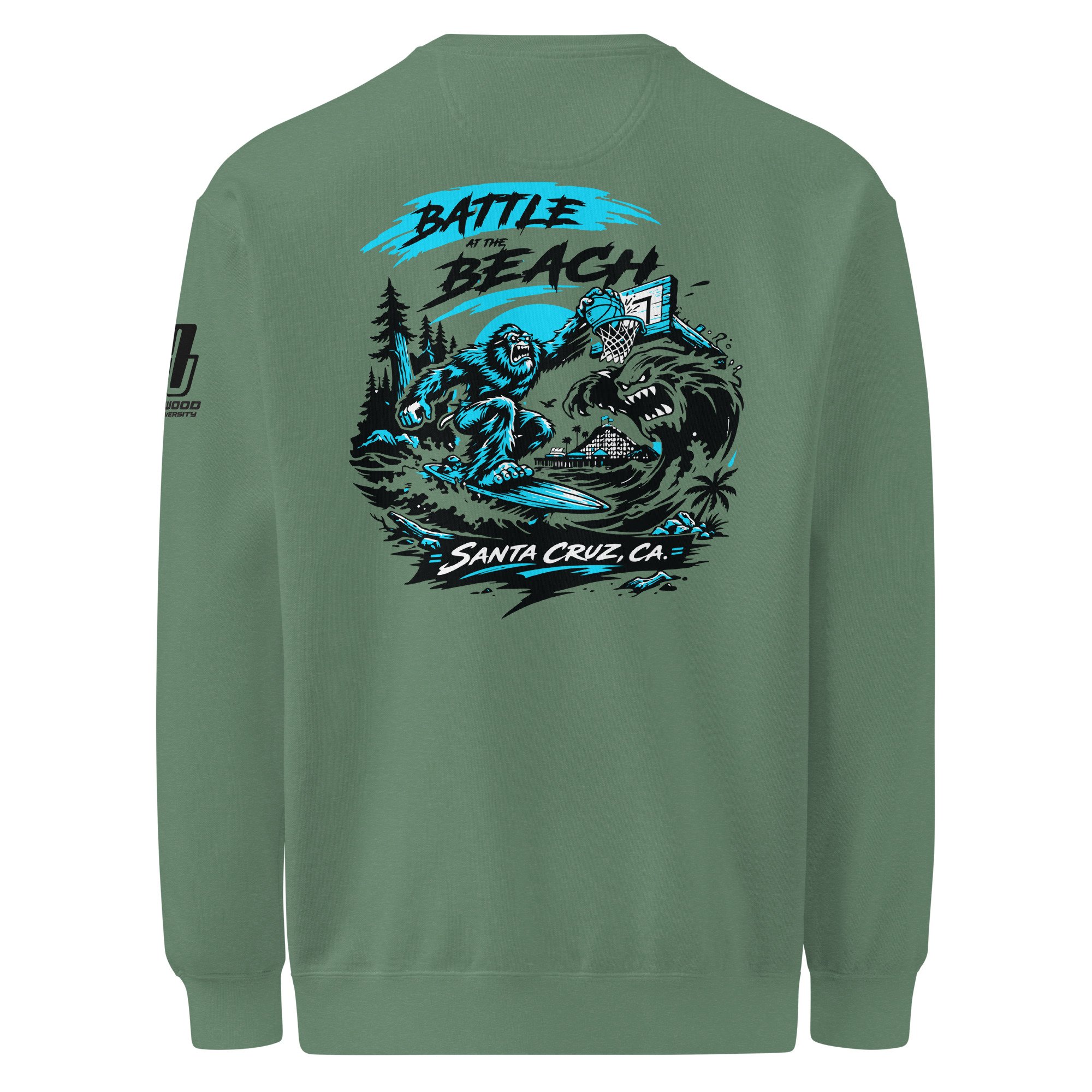 Sasquatch rises above the rim and throws it down on Waveman, bringing raw power from the redwoods to the shoreline. This design captures the intensity of the moment where two worlds collide in a battle for the beach, leaving the question… who will end up the true victor?